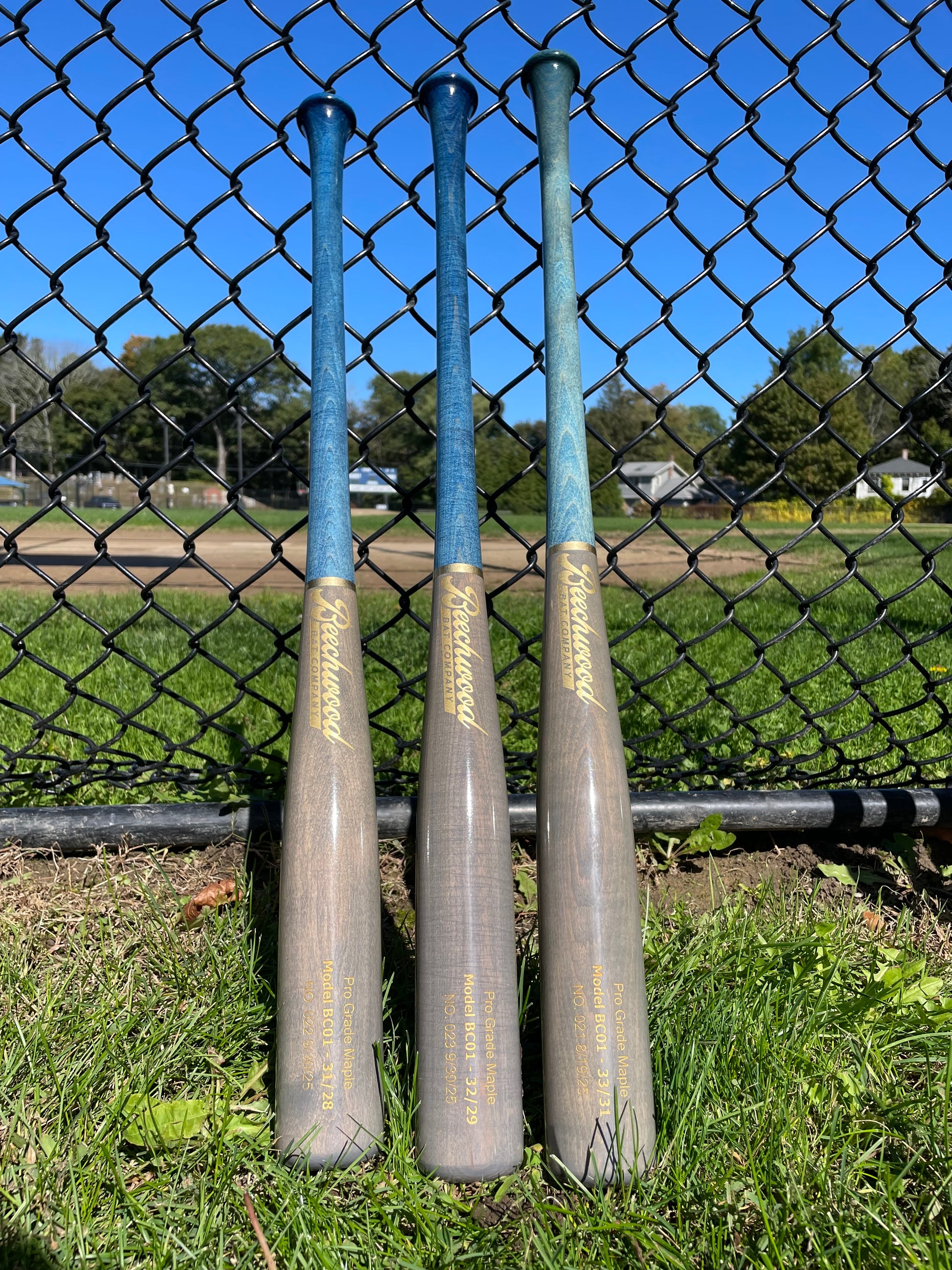 This bat is a BC01 model which is a slightly end loaded model similar to a 243/AP5 providing a powerful swing weight. Coming in a standard -3 weight and a gloss blue and gray color. Made with professional grade maple and a fiber compressed barrel for maximum wood density.