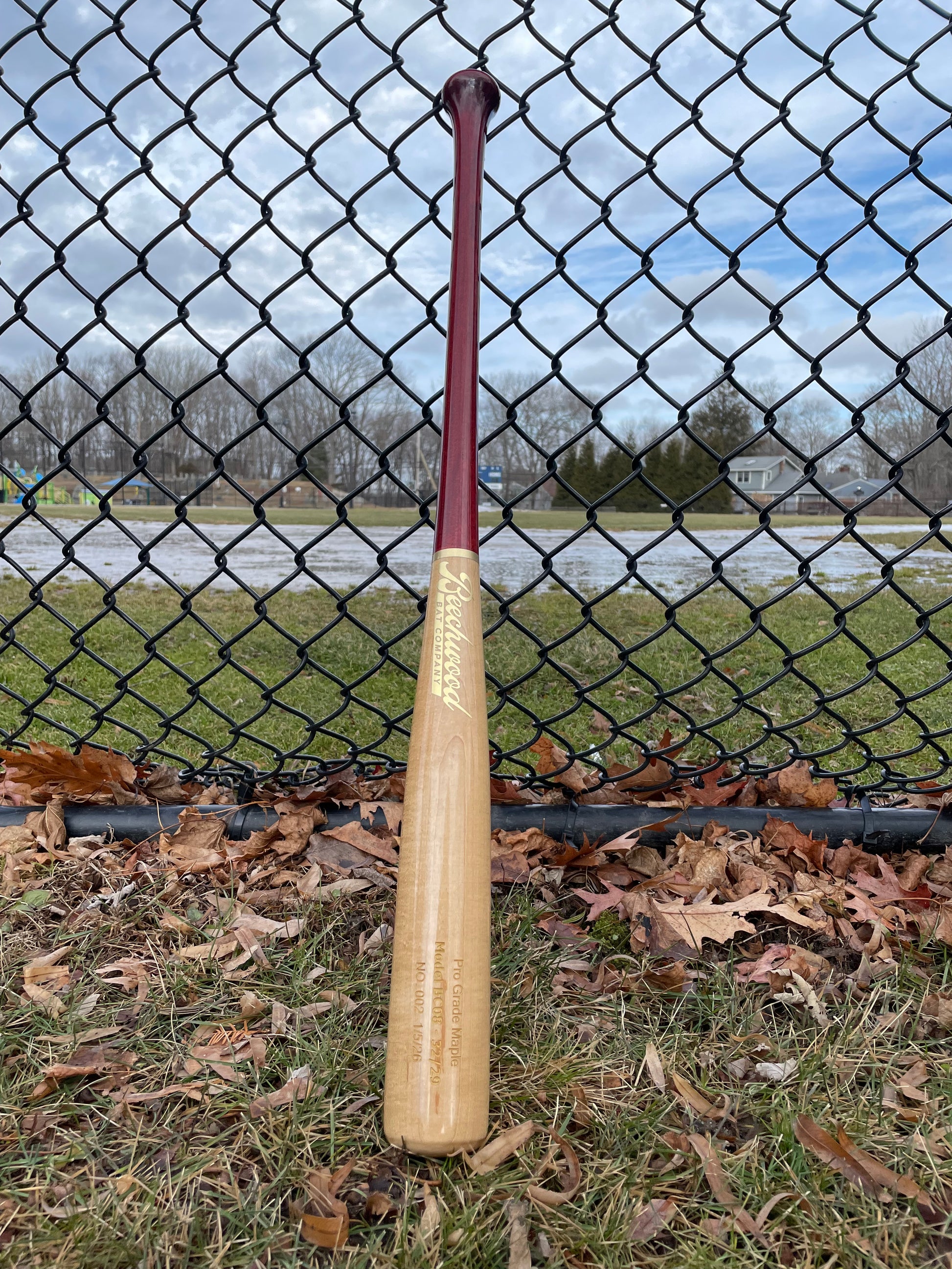 This bat is a -3 BC08 model, with a gloss red stained handle finish. It’s made with professional grade maple featuring a fiber compressed barrel for maximum wood density.