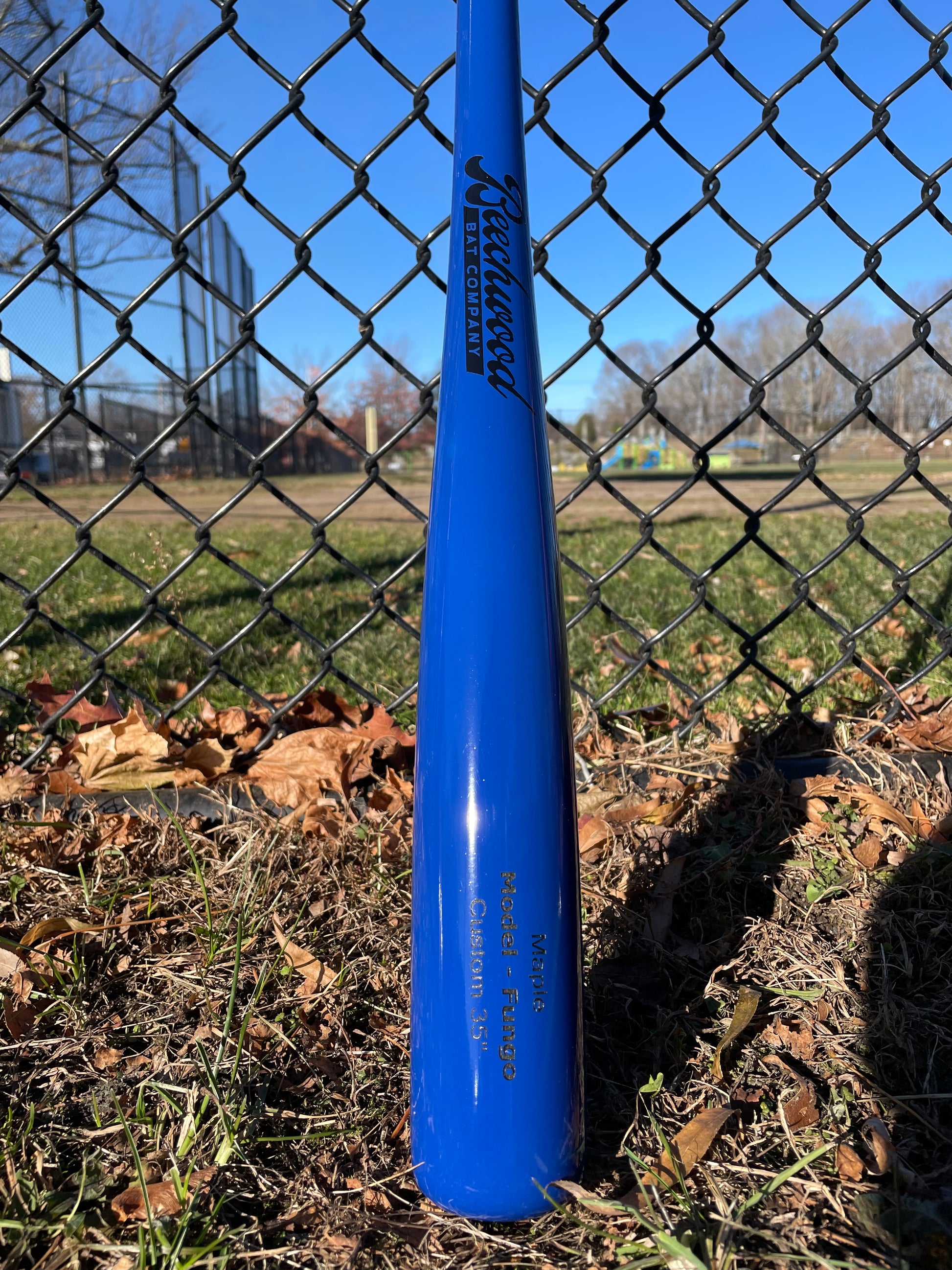 This fungo is a 35” featuring a traditional style knob and a dark blue gloss finish.